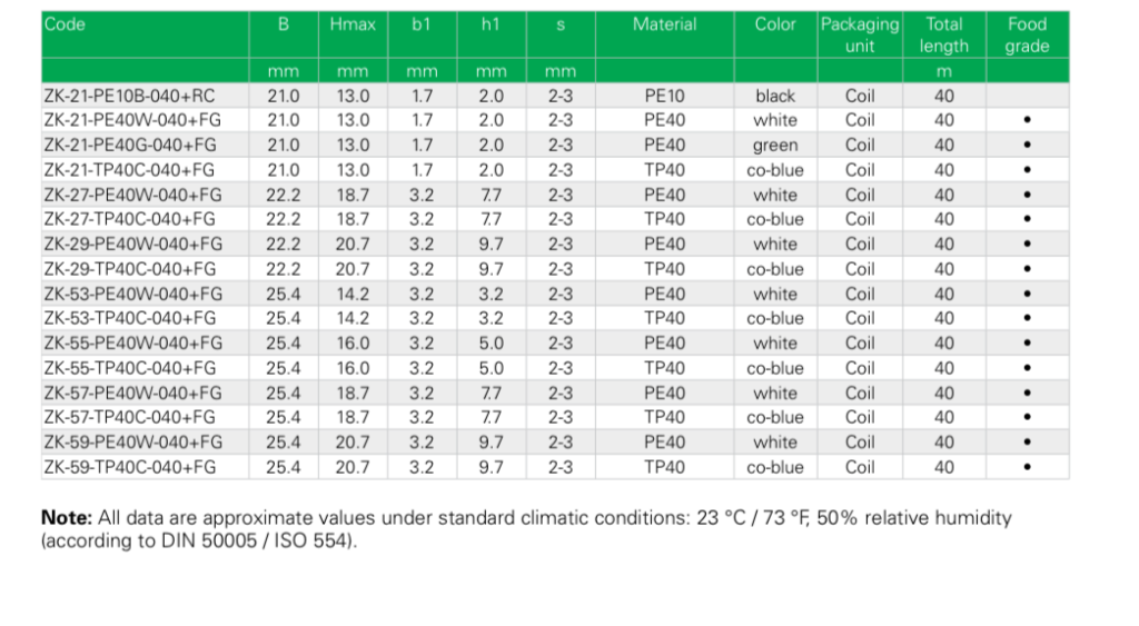 Sürtünme Profilleri Z Polietilen ZK serisi ZK 21 ZK 53 ZK 55