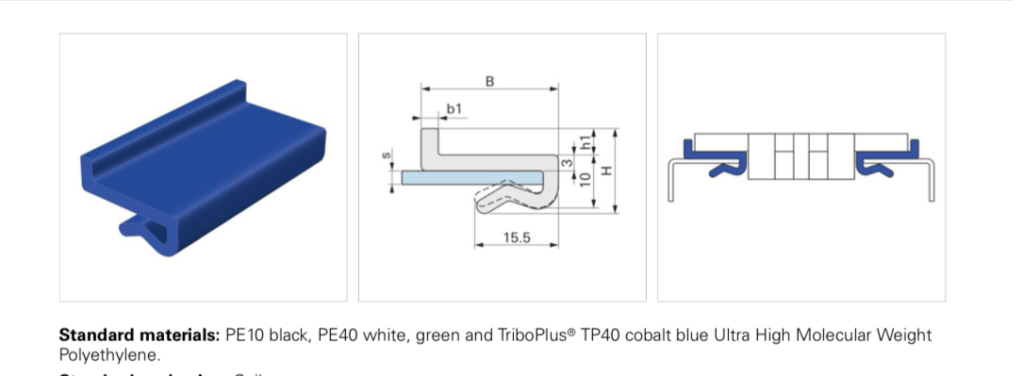 Polietilen Sürtünme Profilleri PE 1000 Burun Sürtünme Profili Konveyör Aşınma Sürtünme Profilleri Kızakları Konveyör Pe 1000 Kızakları Aşınma Bantları Habasit flat chain c0820 c0810 c0882 serisi kızaklar ve konveyör bantlar